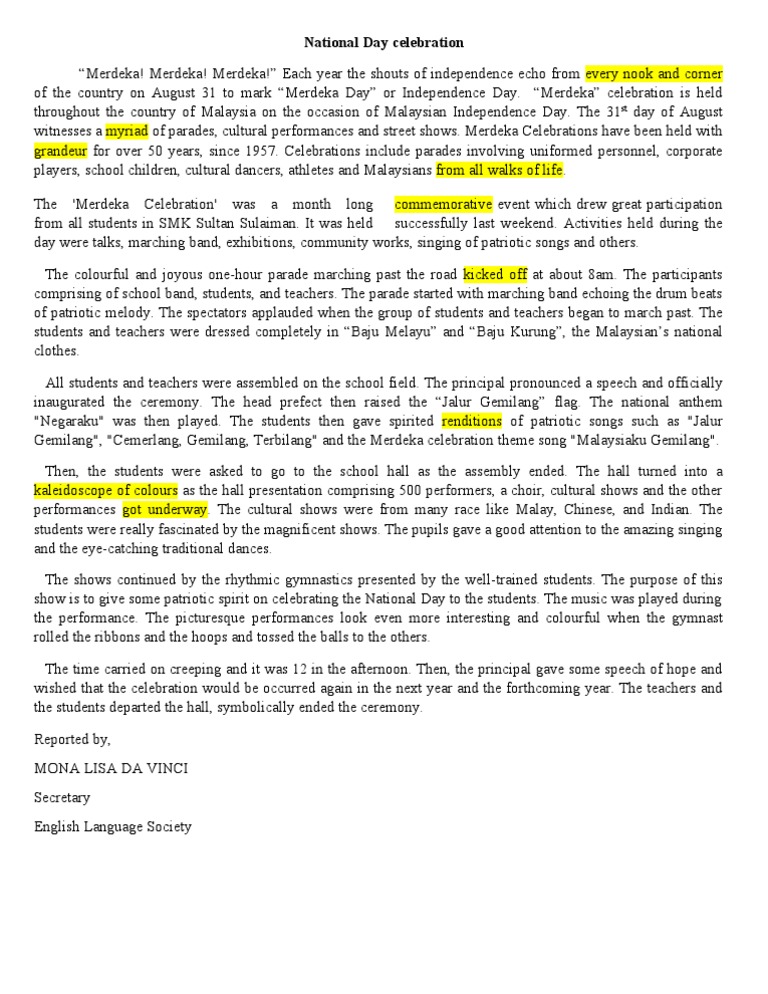 Example Essay National Day Celebration Malaysia